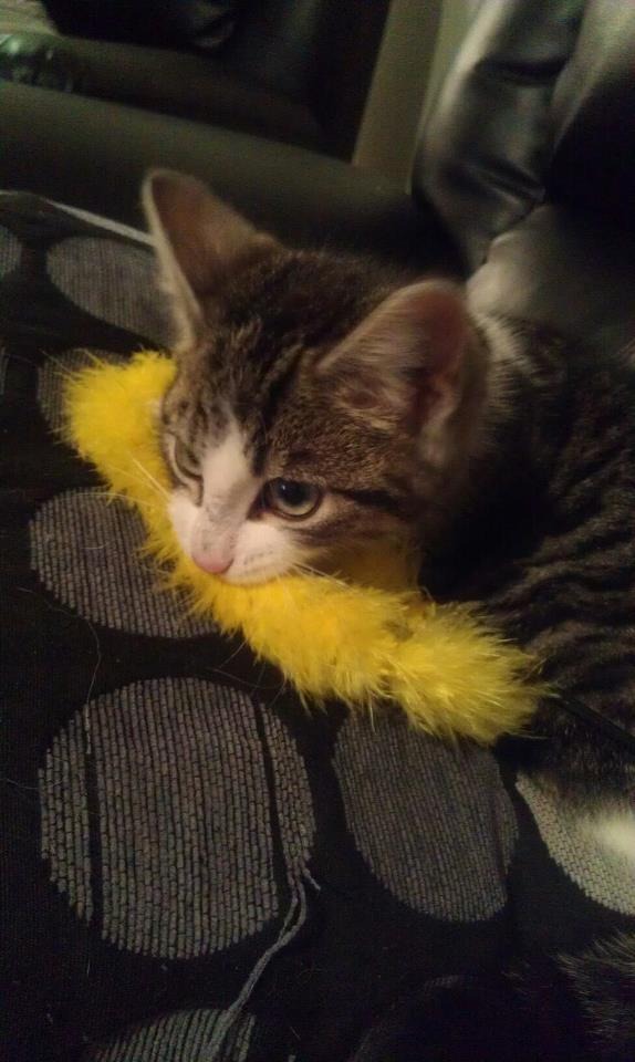 He is litter trained and loves to play with a cat toy. \ He does not make much noise, and is a joy to have around.