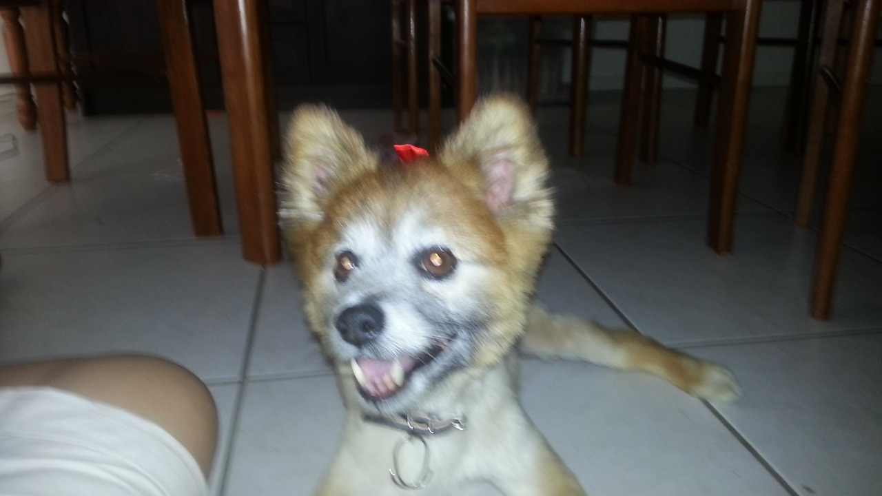Ralph is as cute as a button, he looks like a little panda bear only not black and white. Although he is 7 years old he still has so much life in him. Ralph is a pom X
