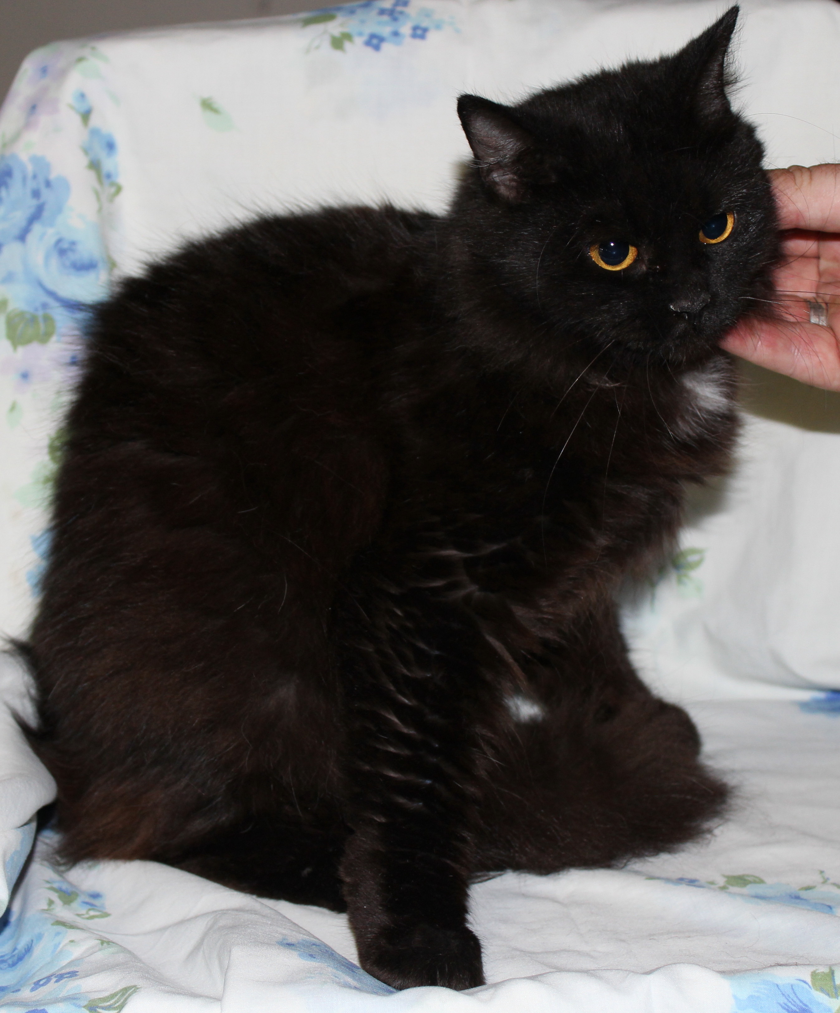 Tamika is fully grown, but very small. She is one of the most affectionate and soft natured cats I have ever met. She gets along well with the other rescue cats and doesn't even mind the little dogs.