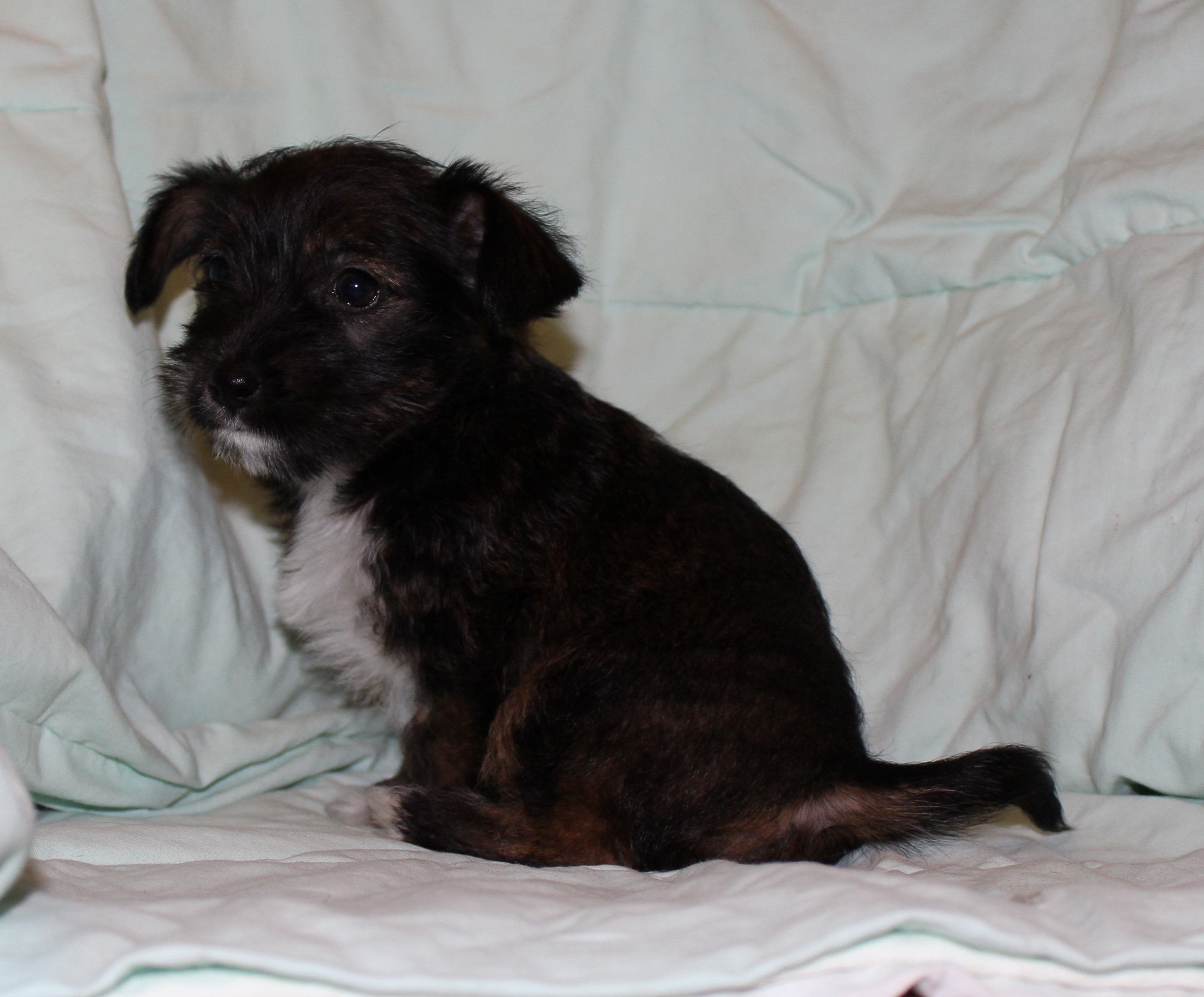 She has medium length hair and will probably require some form of grooming/trimming when she gets bigger.