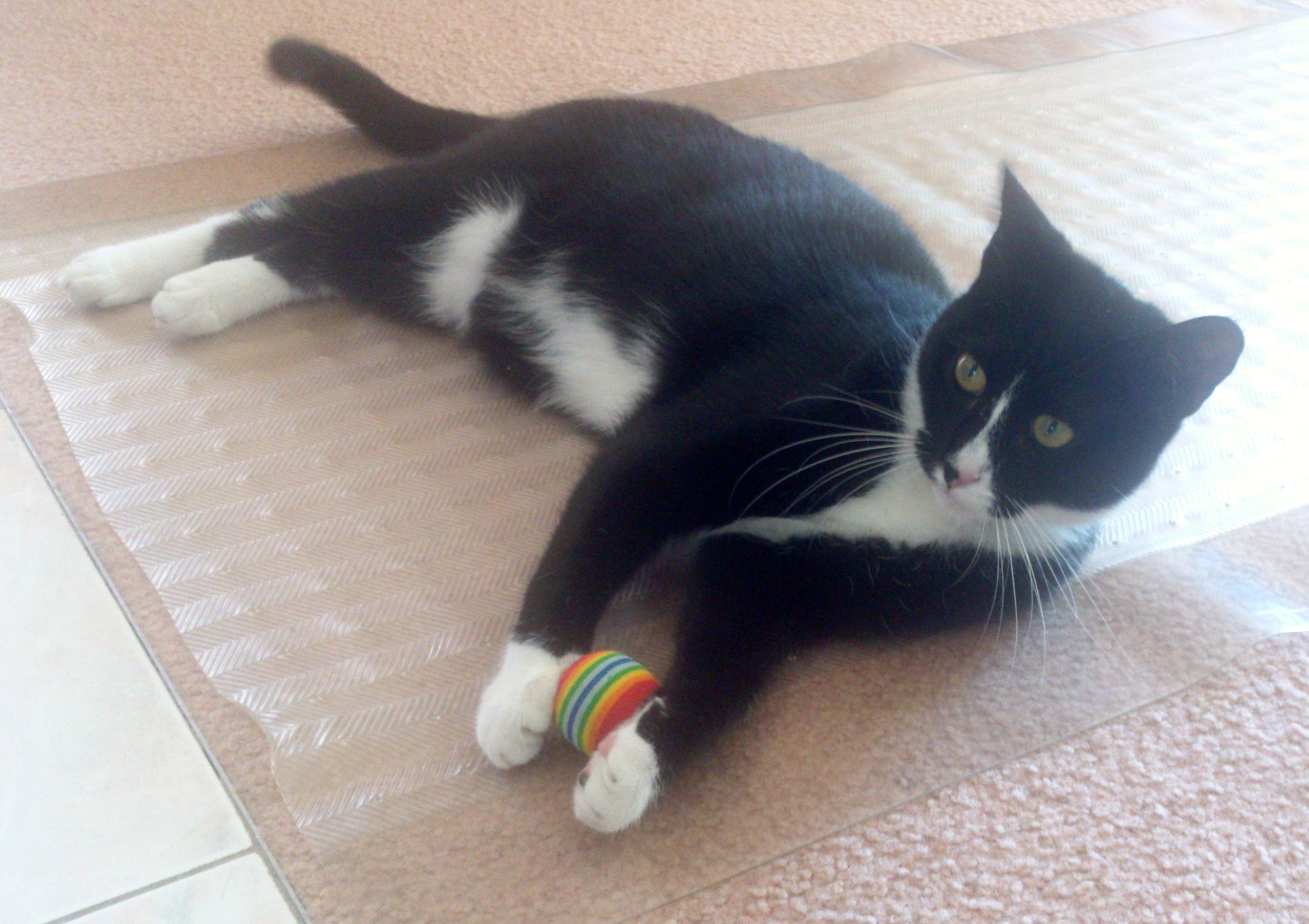 Tonto loves pushing the toy balls around & hiding them under the furniture.
