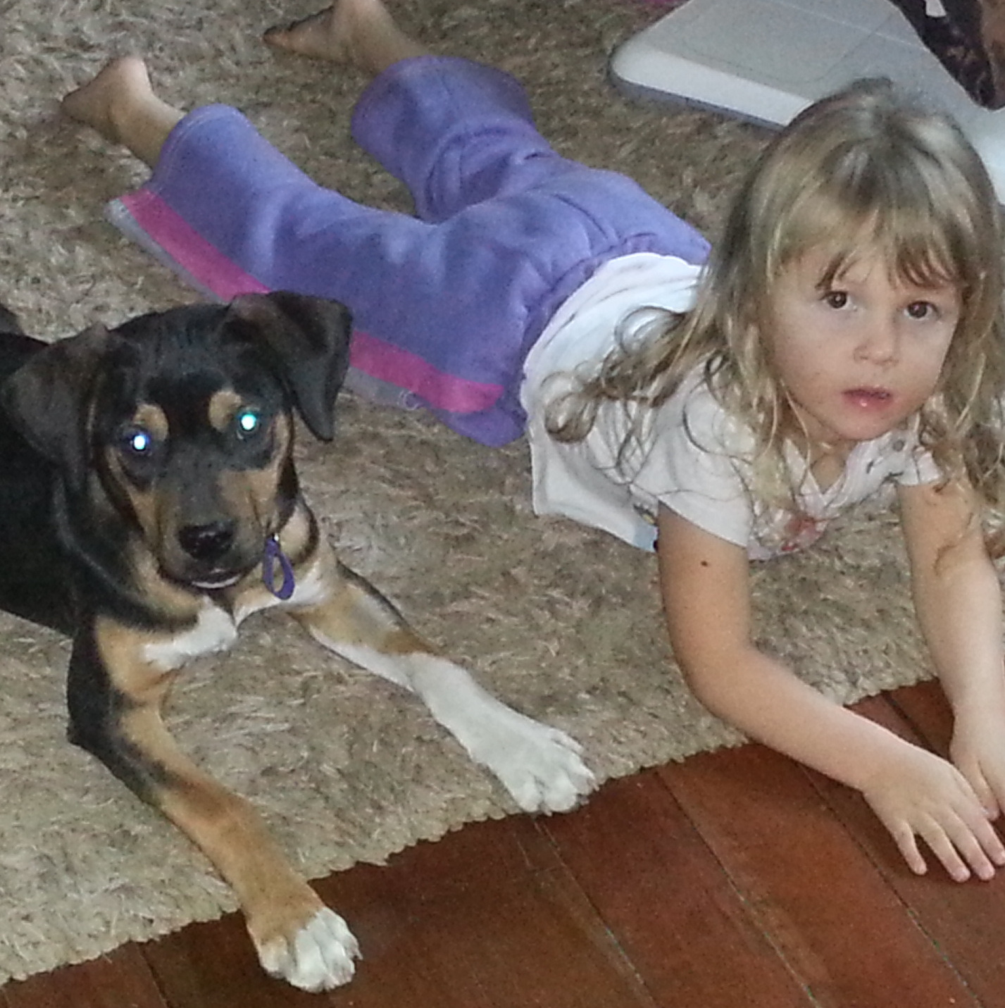 Crush is a 4 month old, male, mixed breed, tri colour puppy. Cute as a button and a perfect family dog. He possibly has a bit of Labrador and/or kelpie in him? He loves my 3 year old daughter and plays very gently with her.