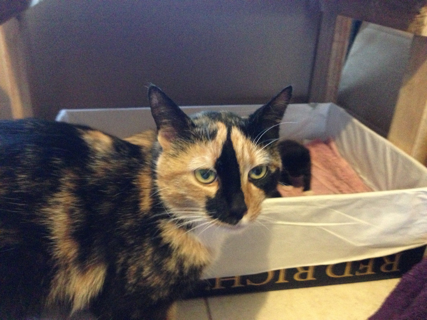 Bella's babies and her foster babies are all weaned now so this beautiful mum can find her own forever home.Bella is very smoochy and talkative She's very loving and keen to supervise.