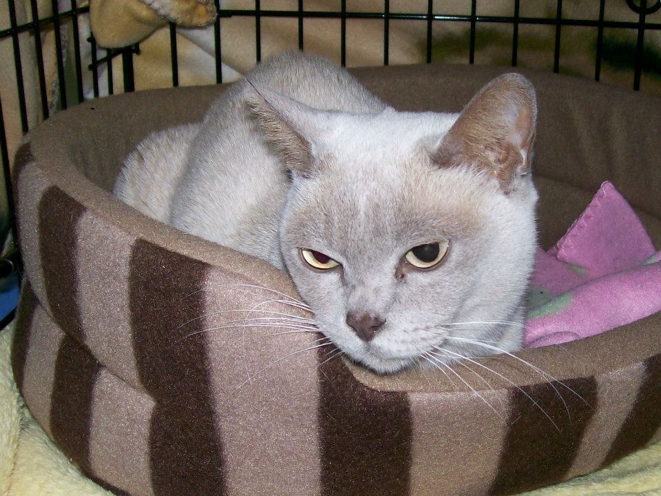 Zena is a beautiful lilac point Burmese. Very happy and easy-going girl who gets on well with other cats.
