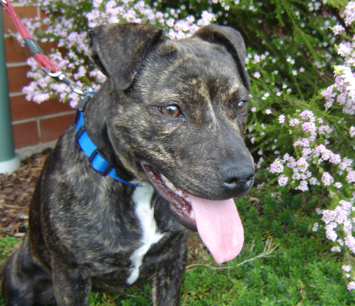 Opal has a typical staffy smile which is infectious. She is a lively young dog who will keep her new family very active and also entertained. She is quite intelligent and has learnt very quickly that sitting equals treats and will sit staring expectantly at you. Being so food motivated Opal will really enjoy training sessions.
