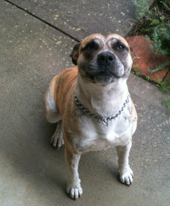 Boof is a 1yr old, male, American Bulldog x. He is VERY friendly and loves attention. Boof will play fetch but is reluctant to hand over the toy once he gets it, instead he will look at you and prance around triumphantly with toy in mouth and wagging his tail until you call him back – something I find quite amusing. He is very gentle and responds well to training. He is not a biter at all but may lick you to death if you let him get close enough.