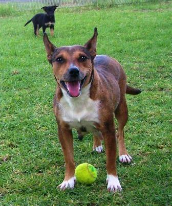 Jess has had a hard life until she landed in foster care and we're sure she'd have many stories to tell! at this stage though, jess is just thankful and lapping up the comfort of a warm bed and good food provided regularly without having to scavenge for her next meal. Jess had been spotted around town in the showgrounds and elsewhere for about the last 18 months. She had mostly been looking after herself and gave birth to a litter under a pile of timber in the public school. Jess did find a friend in an elderly man who, shall we say, was more often than not inebriated and after he turned his back on her, she was alone again on the streets. She still sought human companionship but was now wary and streetwise, aware of what some people are capable of. Nevertheless, jess found another older fellow to attach herself to who was kind, but he was unable to keep her and finally she was brought into foster care in the hopes she will finally, once and for all, find a loving home to call her own. On arriving in foster care, jess was placed in a quiet room with a food, water and a lovely soft bed. She was taken outside for the first 4-5 days only on leash to ensure she wouldn't try to run off. She never even attempted to! it was two days before she ate a whole decent meal and a week before she was relaxed enough to have a good, proper sleep (without always having to keep "one eye open" for any type of danger!). A few days later she was relaxed enough to jump up onto the bed to nap. It's recently been discovered that jess likes to play fetch with a tennis ball. She is social with other social dogs, but she likes gentle contact, not rough or rowdy play. Jess also likes gentle children and adults but reacts timidly to any loud voices. She is housetrained and really appreciates the airconditioner! jess is a very well mannered girl and she'd be an ideal companion for someone who doesn't want a demanding dog that jumps all over you. Jess is more the type to lay at your feet or on your bed (if allowed) and she'll lay on the lounge beside you for a snuggle. Due to the time she spent having to fend for herself, jess shouldn't be in a home with any free-roaming small pets like rodents or bunnies etc, or any cats, kittens or chooks. If you choose to take jess out on a walk, she is fine on the leash but she will be wary of strangers, although she won't snap, snarl or bite, so a walk is not a necessity for this girl as she is just happy to be in a home! she has shown herself to be a very loyal companion who will quietly follow you around without demanding your constant attention. . . She will simply be there for you. Jess is not very big, only around the height of, for example, a staffy. We believe she may be pregnant again and, if that's the case, she will be kept in care until any puppies are weaned and she can be desexed. But, if you feel you can provide this little girl with the loving home she deserves, please don't hesitate to contact and she can be placed on hold for you. We'll keep you updated on her progress regarding whether she is in pup. Jess is wonderful with older children. She has attached ehrself to her carers 11 year old daughter and will fetch for her all day. When the kids are playing ball games she retireves your lost ball