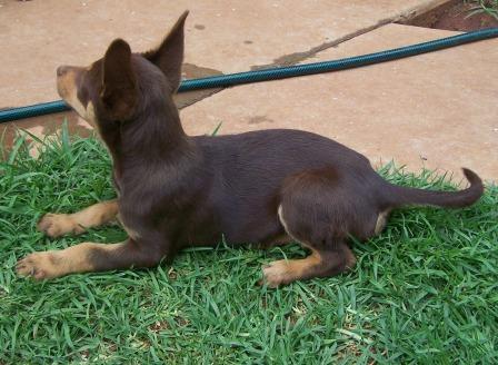 Shorty is the smallest of the litter, only about half the size of the others, but he makes up for it in personality - he's a real comical scallywag and as smart as a whip! all these boys have lovely even temperaments and they've been a pleasure to foster. Being of keen mind, they quickly become attune to the household and will try to let you know if there are strangers lurking on your property. Shorty has the typical needs of any puppy like nutritious food, shelter from the elements and a well-fenced secure yard. While he is still a baby, shorty can't be left alone in the yard to fend for himself and should be allowed indoors to interact and spend quality time with his family. He will make a a great house pet rather than left alone outdoors as he loves to laze and watch tv after all his running around and swimming, etc. Shorty is social with adults, kids and the resident cat (who likes to use pups as a comfy pillow!). He has a beautiful tri-colour coat that will be short and low-maintenance. Shorty will thrive with training and would be best in a home that has an active lifestyle, one that likes to include their furkid as an integral member of the family. Alternatively, he should make a good little agility/obedience/dogsports champion of the future! either way, shorty will make a loyal, loving addition to your life