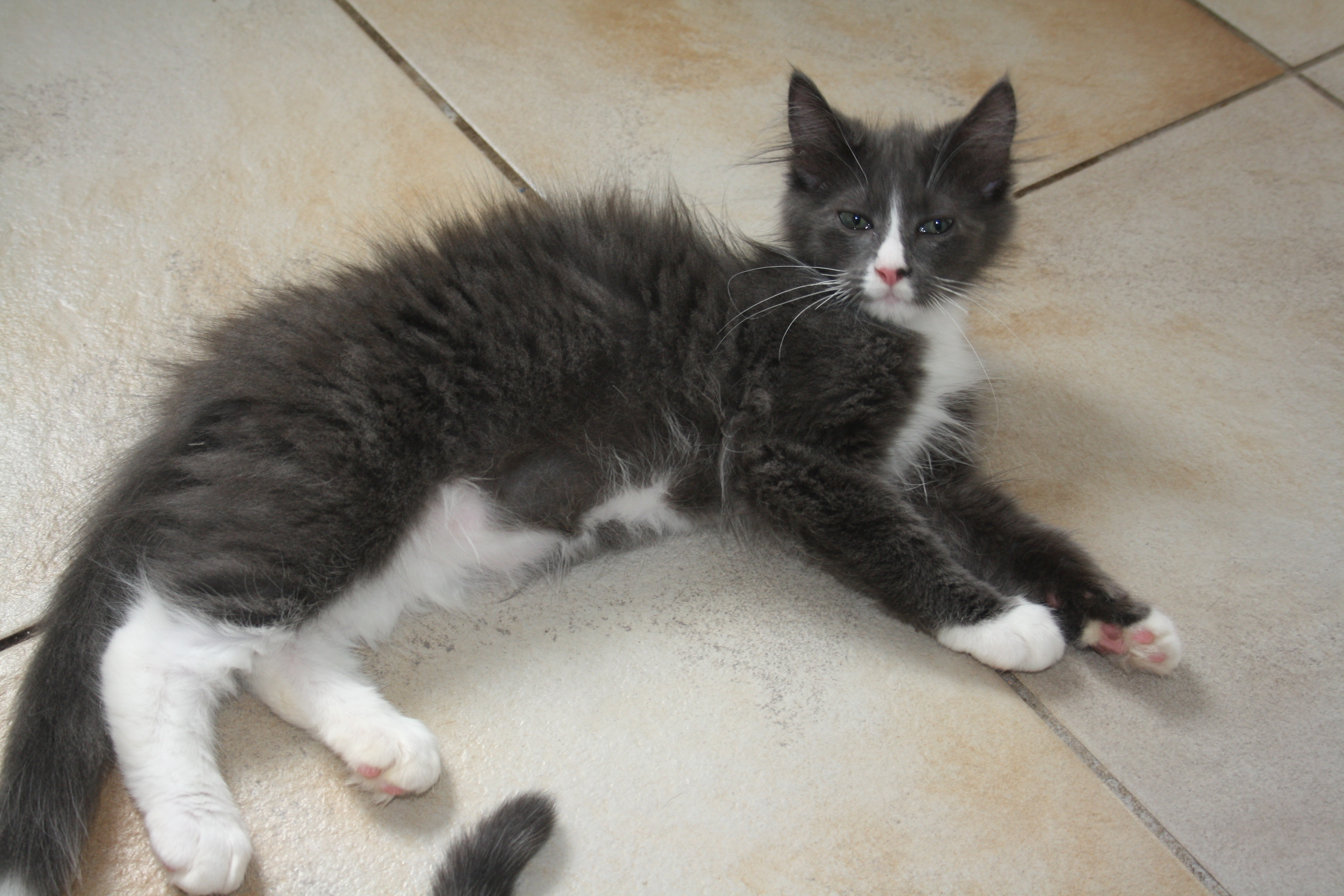 Rambo is a delightful, handsome little man with a long, soft grey coat. He is a great fluffy kitten that is playful and snuggly.