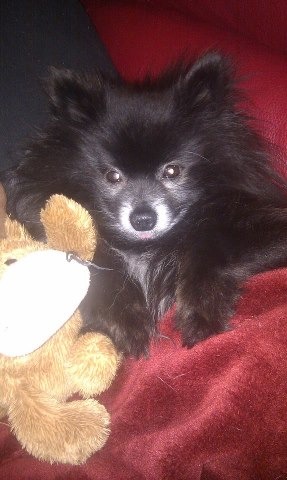 Buddy Bear is an ultra cuddly little chap that wants to jump into your lap as soon as you sit down. He is quiet and very placid, and has shown quite a lot of patience and tolerance to being manhandled by small children. When you come home, or go to take him for a walk, he will bounce, spin and twirl just like an overexcited teenage girl - if he could giggle and squeal I'm sure he would! He is good both on and off lead, and is obedient. He is a very social dog, he loves people and will run up to everyone to say hello, and if there was a Mr Congeniality Award going he would win it hands down. He gets on with other dogs, but does not seek out their company specifically - he much prefers a human pack. He doesn't really like being left alone, so someone who is home most of the time would suit him best, or if you work, another dog will help stop him from feeling lonely. He is not particularly cat friendly, but since he is currently living with one, he is learning to leave it alone. His coat is very thick and full, and will need regular grooming. Buddy Bear is a delightful little (3.8kg) snuggle bug who will melt your heart and all the hearts of all those who meet him.