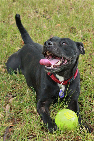 Since Maisy has been at Stafford Rescue Linda has noted that Maisie is a sweet girl who can sometimes be a bit bossy. She enjoys the company of Brian, Bubbles and Trixie. She loves her balls and always carries one in her mouth. Maisie can be choosy with her friends and if the other dog is calm she is. Maisy is another girl who has been used for breeding and not once or twice. She is very happy but will be a lot happier when she has her own family to love.