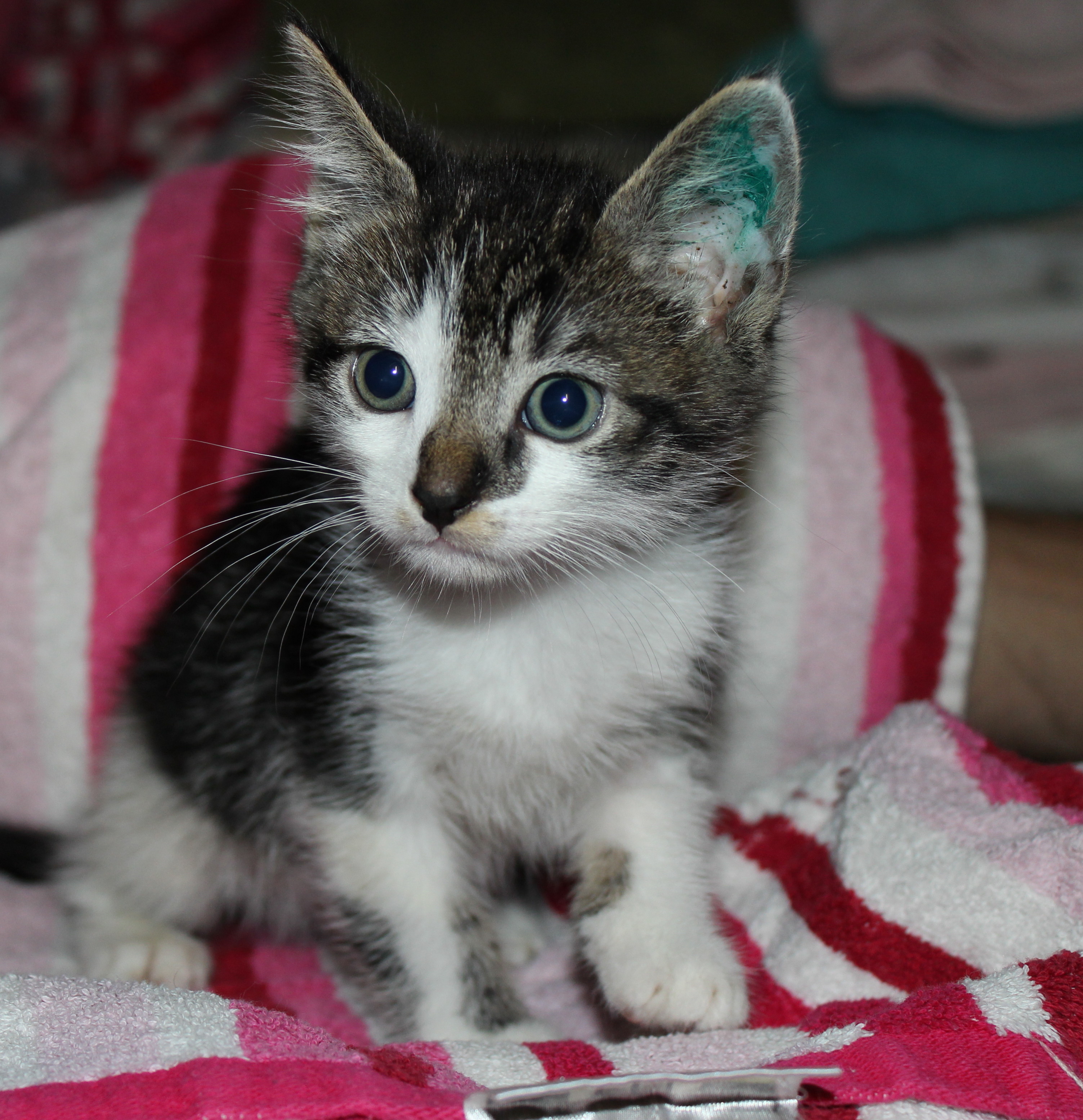 He gets along well with other cats and dogs and is you typical, cute little bundle of love kitten!!