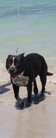 She adores the beach and would suit an active family. She is good with most other dogs but does not like cats.