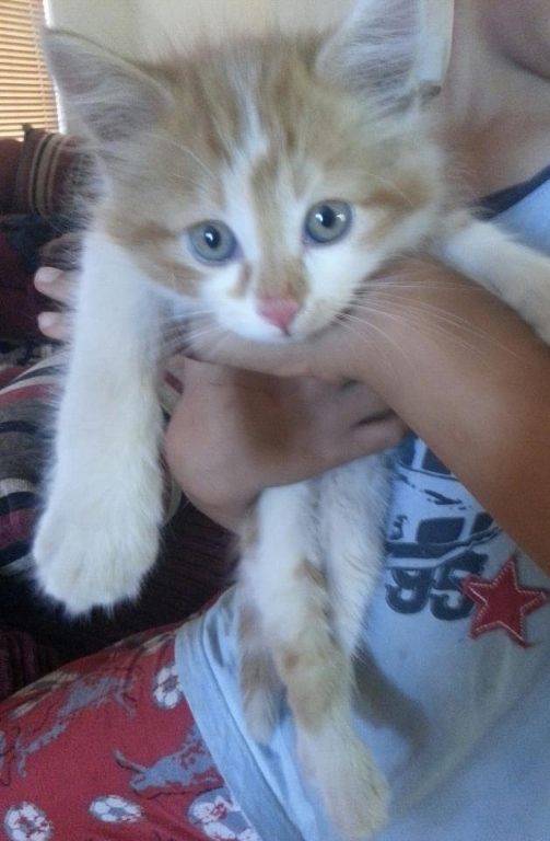 Jesse is the most perfect kitty. He loves cuddles, is great with kids, loves other animals and overall loves attention and company. He has a good purr motor and is floppy like a ragdoll. Calm, gentle and very smoochy. Jesse has fluffy white and ginger hair and a very laid back boy with a great personality. He loves to climb the Christmas Tree and play with his toys. A great family kitty.