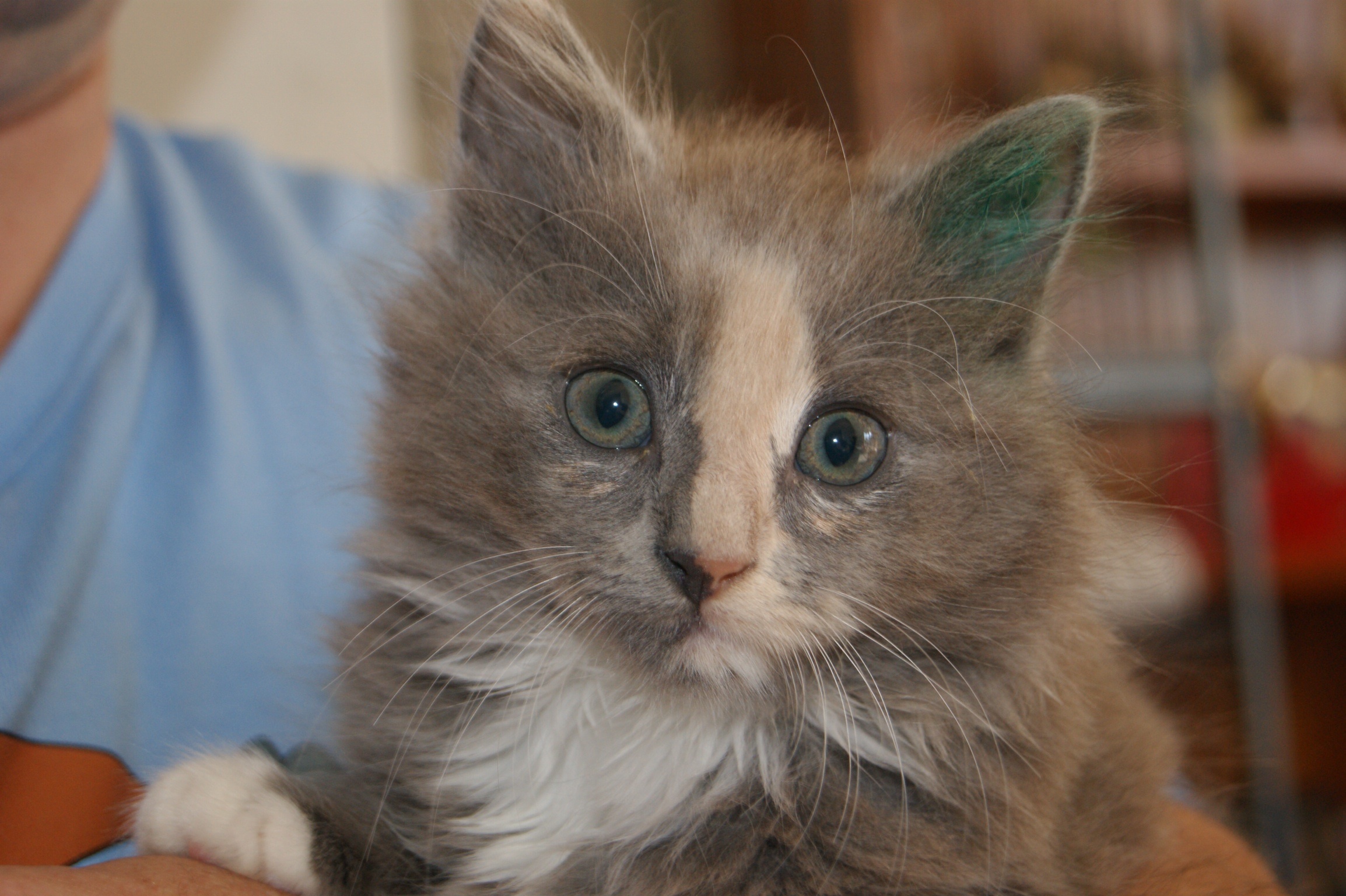 Poppi is looking for that someone special that has the time to really bring out her personality. She is a shy little girl at the moment but with a bit of love & attention will make a beautiful companion. She is a light grey Tortie. She is currently living in a foster home with 2 other kittens, an older cat and 4 children so she is slowly getting use to being around other pets and lots of noise.