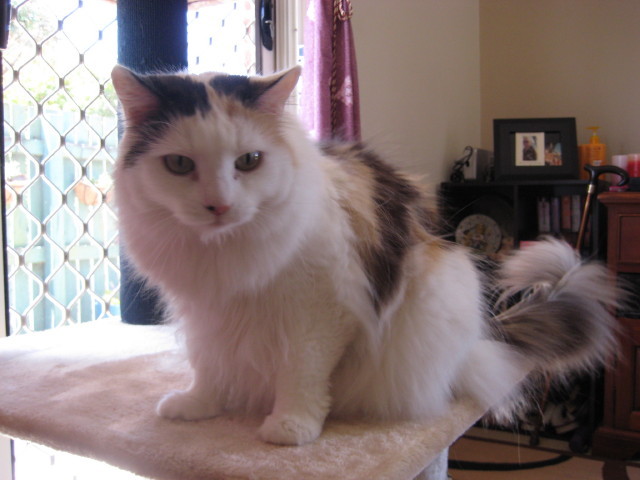 Sasha is a dainty, soften spoken cat who loves to purr. She's very loving and affectionate and just loves your company. Sasha will be there to greet you and tell you about her day before settling down to watch TV with you. She loves a little play with her toys, but being a mature lady, she's happy to watch the world go by and catch a nap in a sunny spot. Sasha is an indoor only cat and she will bring her lovely personality into your life. She has a longer coat that requires brushing, but being an indoor cat, she doesn't tangle and her coat is easy to maintain. Come and meet her today.