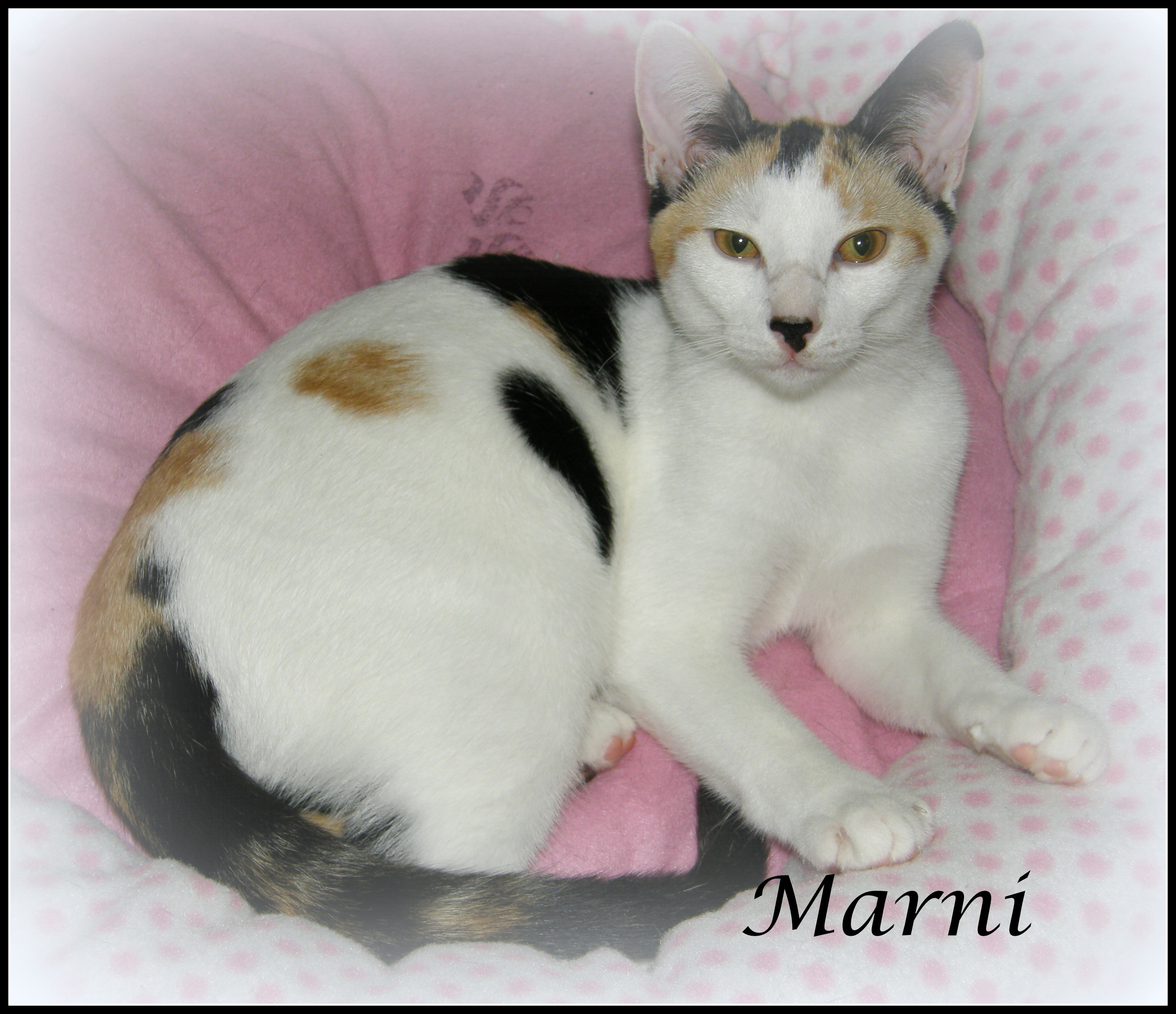 Marnie is a beautiful, friendly little girl who gets on well with other cats. \ She's very affectionate and will often come up for a snuggle and a pat, before curling up next to you and going to sleep.