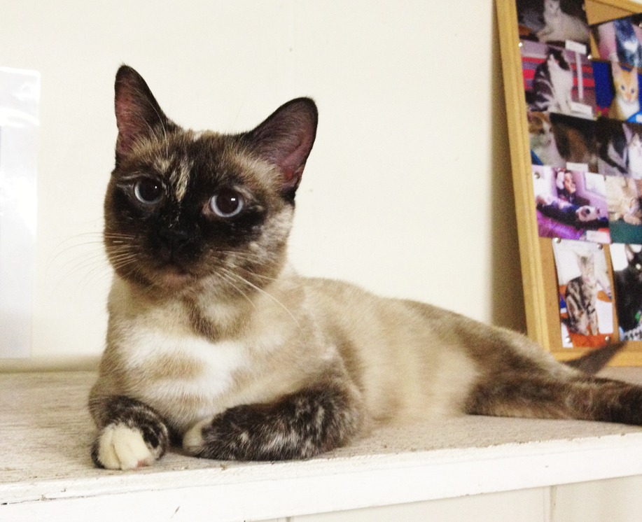 Ruby is a light grey tortoiseshell with the prettiest blue eyes and Siamese features. She has a beautiful nature and is extremely affectionate. Ruby loves attention and is very excited to find a new, loving home.
