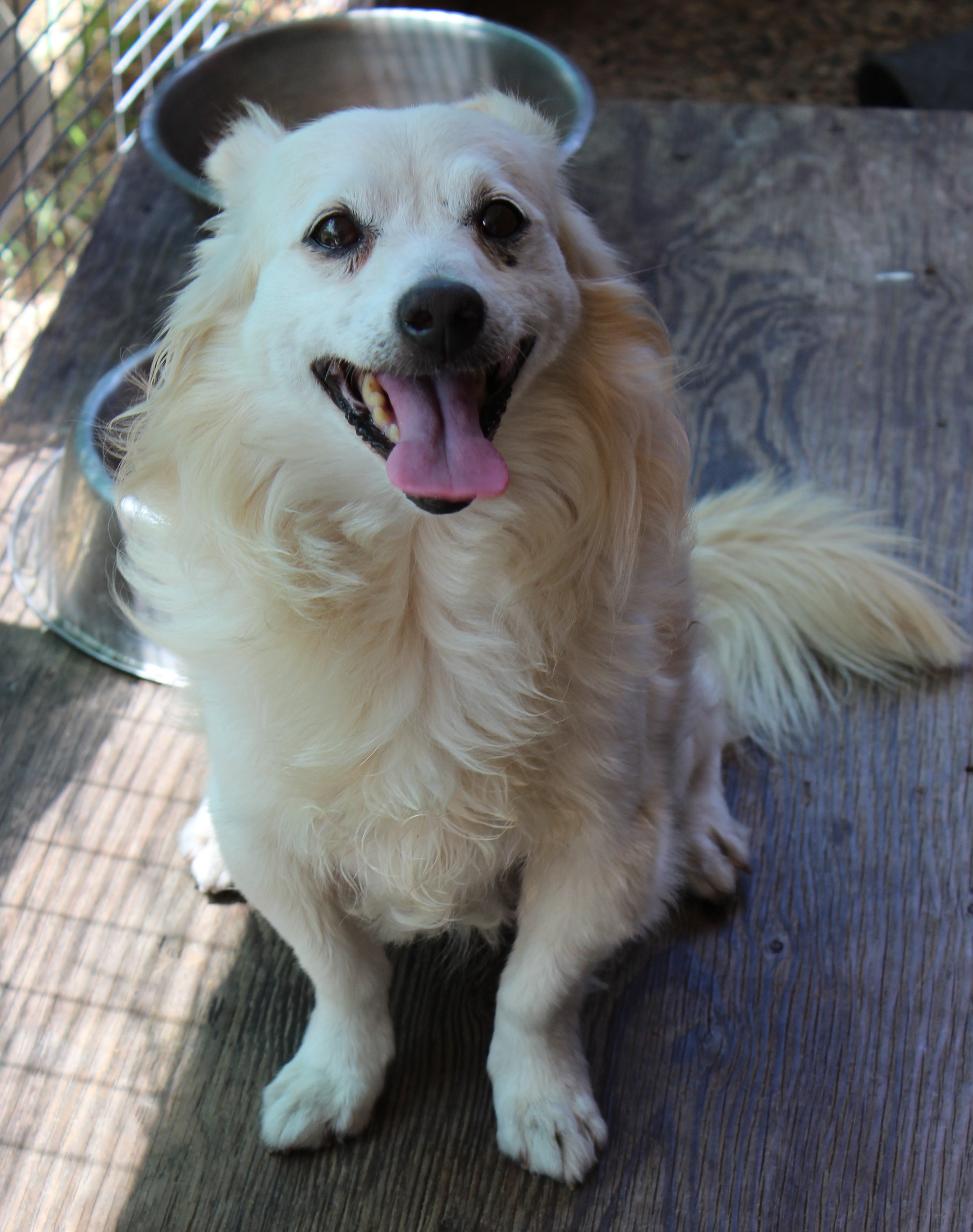 Can't decide whether he is a Pomeranian cross, or a Spitz breed cross, so have put the mix of both!! He is about 6kg regardless.