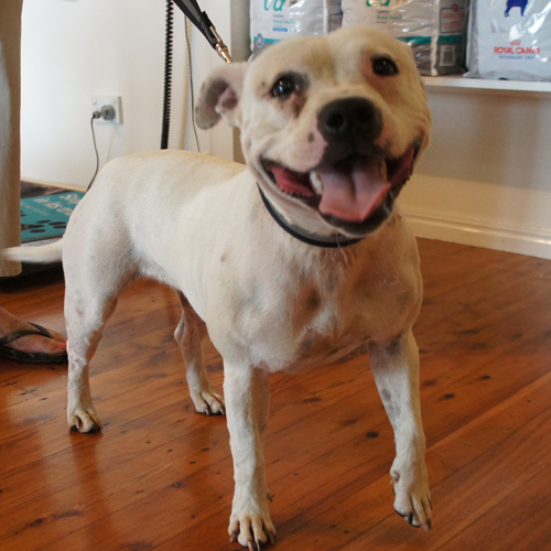 Ruby is an active little dog who loves to play. She will need high fencing as, like all staffies, she can jump! She is good with dogs and children and needs some training - a fun-loving girl! Because we are close to the NSW/Qld border our animals can go to either state. We require prospective owners to meet a dog and we do not fly or transport animals interstate.