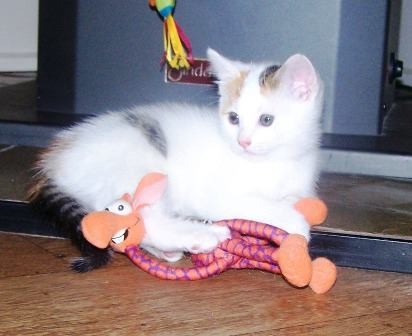 Beetle is a sweet outgoing and very playful kitten. She is 8 weeks old and has been raised indoors only. Beetle is house trained and social.