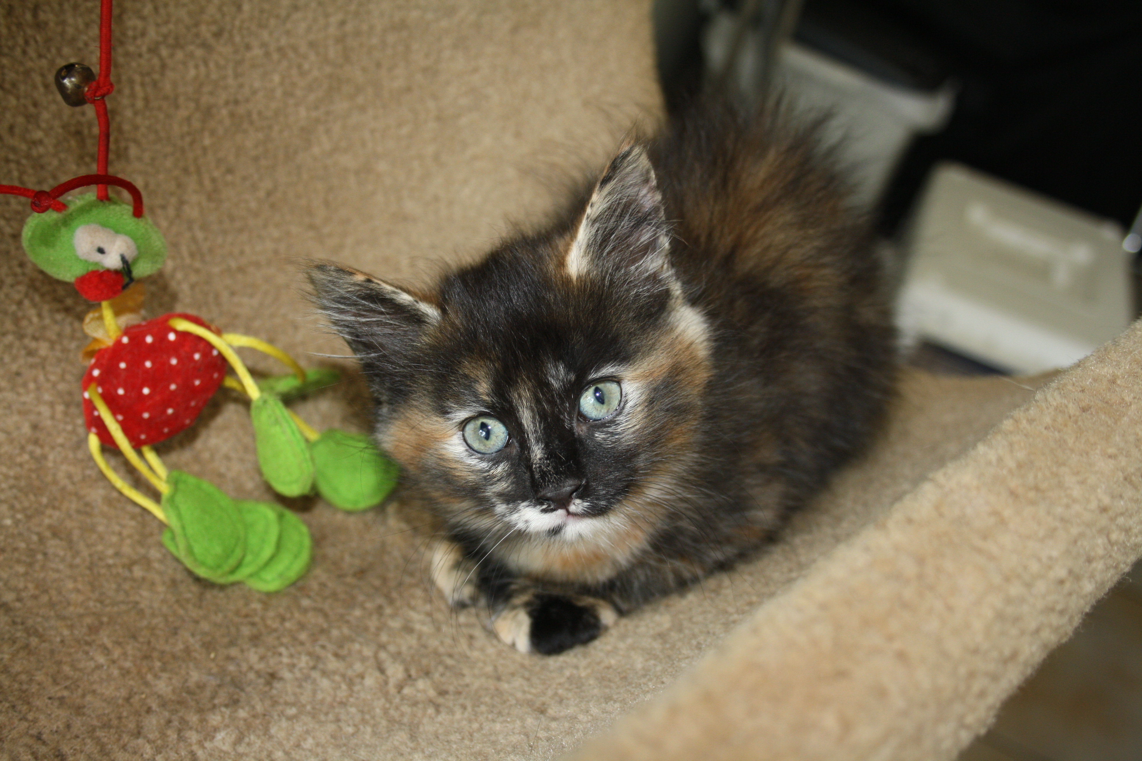 She is a very cute and cuddly little kitten. Having been in care since she was quite young, and now with seven children in the home, she is very used to human handling and tolerates most anything.
