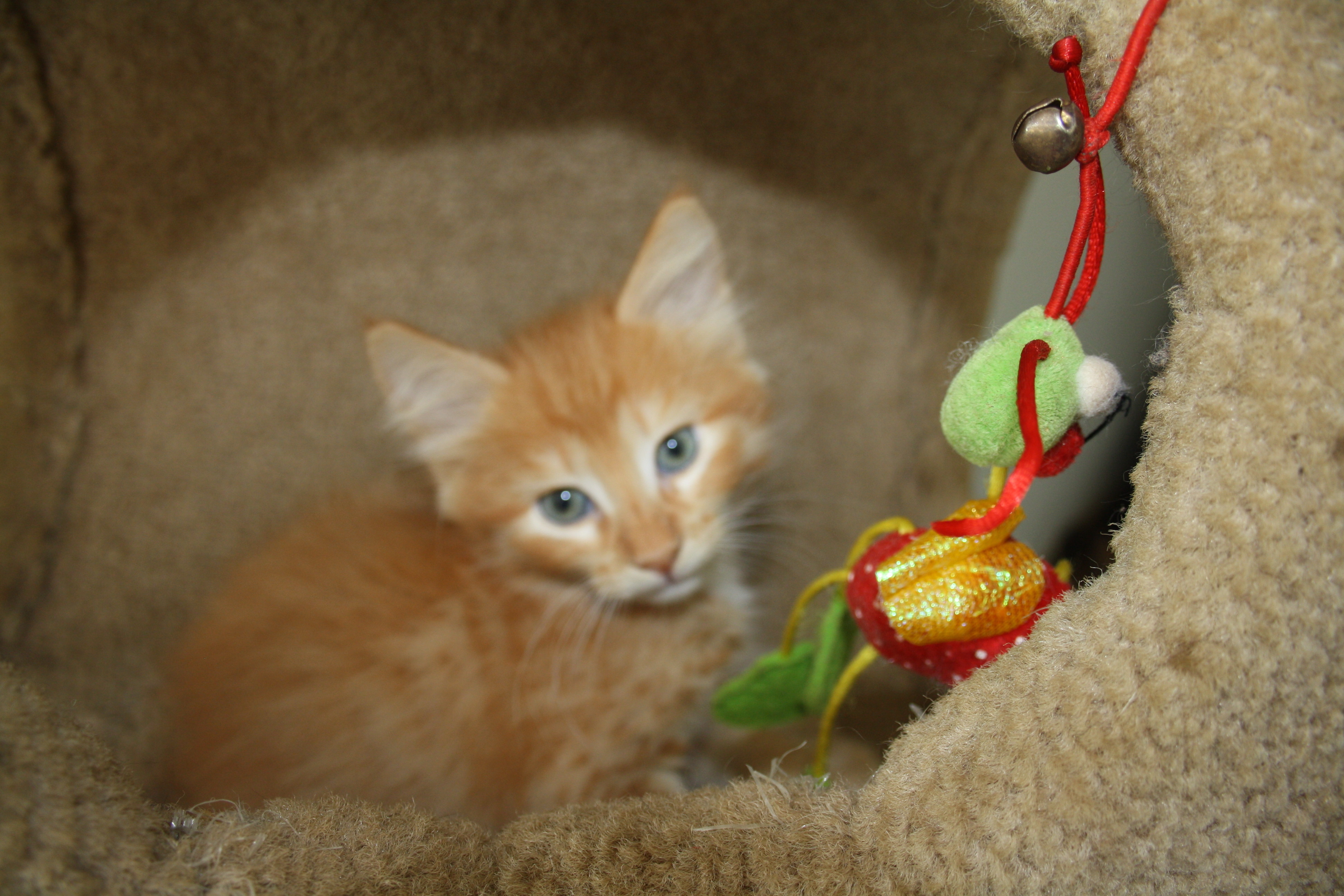 Both are gorgeous fluffy little ginger males who are very playful. They can be a little shy, though they are getting used to handling, in care with seven gentle children who are carefully bringing them out of their shells.