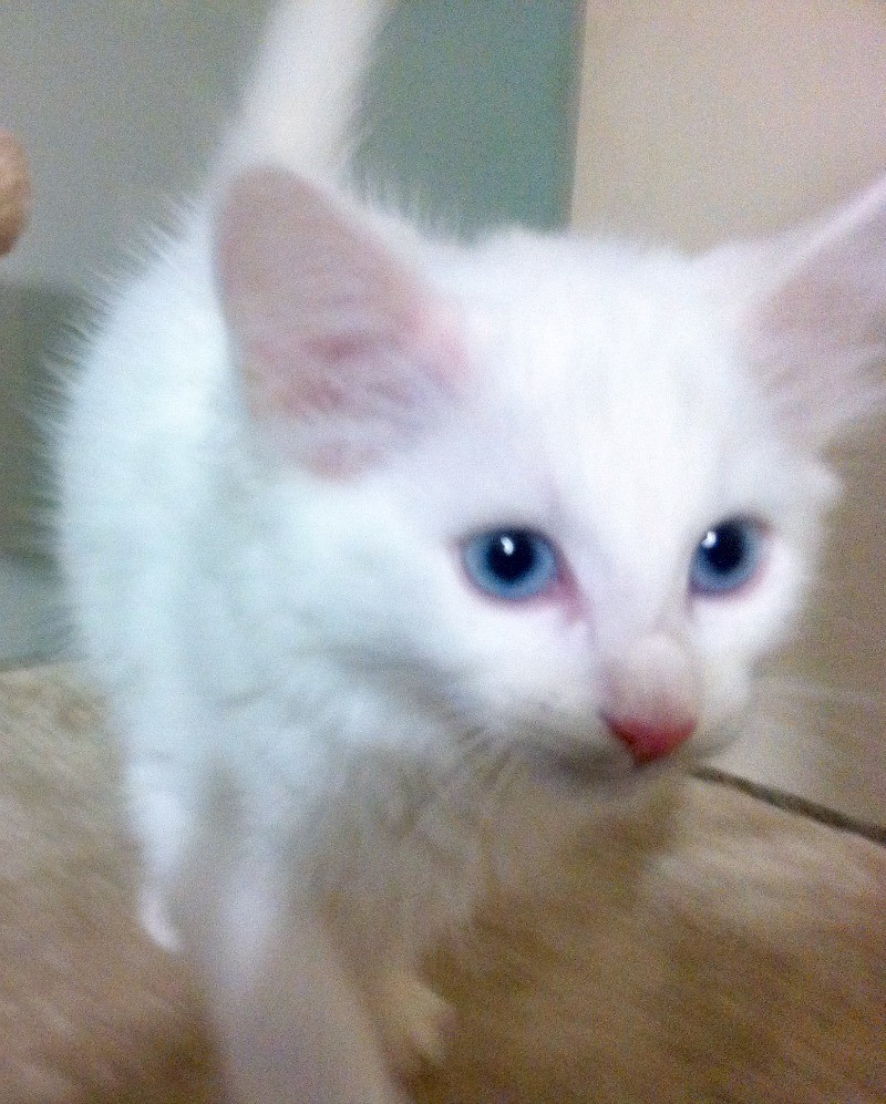 Gorgeous Snowberry (or Snozzy, as I call him!) is such a sweet little boy! He has 2 stunning blue eyes, but as a result, is also completely deaf. Not to worry though, he's ok with it, it just means he will need an extra special home!