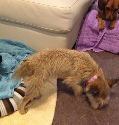 Millie is a 4 month old miniature schnauzer x puppy. She is a happy and loving dog. She is an inside girl that likes to be around people. She is good around other small dogs and follows her foster brothers around the house. Millie loves playing with other dogs, lying on her bed, sitting on your lap or playing with her toys. She is a beautiful girl.