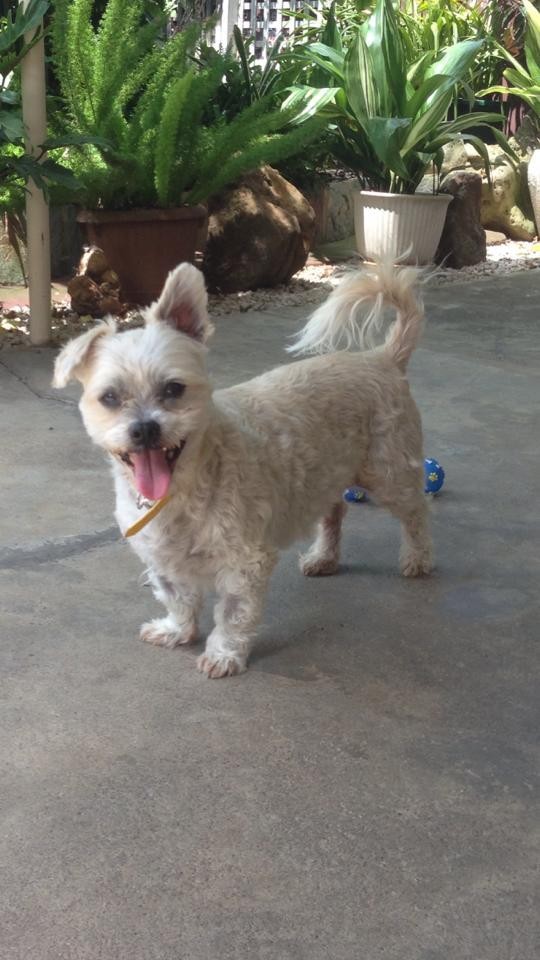 Toby is a sweet 14 year old male Maltese cross. He loves to be indoors- just to sit or follow someone around, he gets along with other dogs, but is cautious of our cats (mind you he does love their cat food) . He doesn’t need much exercise but as soon as he sees the lead he goes crazy and enjoys a nice walk.