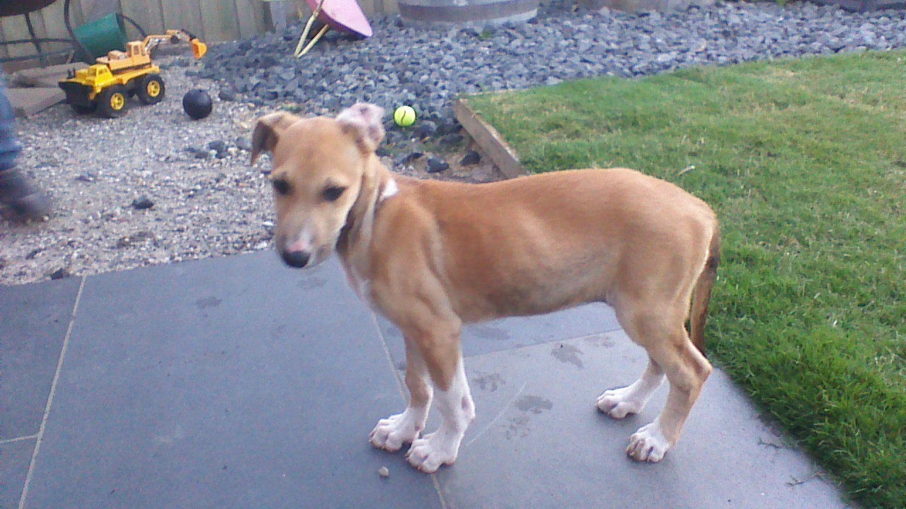 Hi my name is Orla (golden princess) an 8wk old wolfhound cross. Since being rescued I have moved in to a wonderful foster family who has a 3yr old boy how I love playing with. I am so gentle and caring. I just love having someone pat me and give me affection. I am going to be a big girl but VERY elegant at the same time. I am the type of dog that will like to walk but not for to long I do need/love my rest.