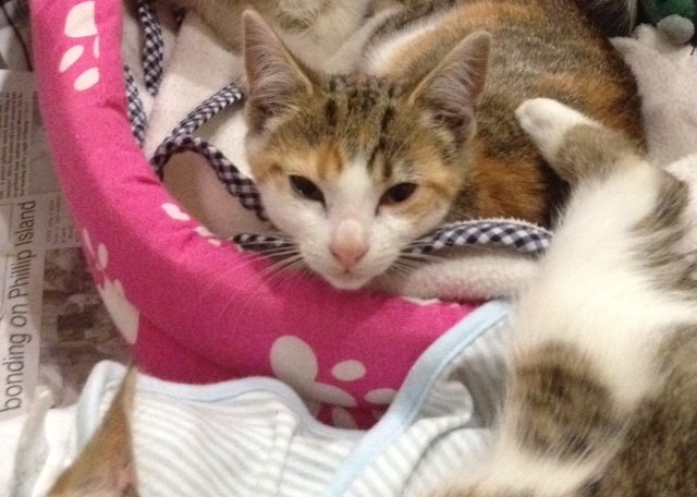 Amy is a gorgeous girl, her colour is torti/tabby can be a bit shy at times, but once she warms up she loves to play. She is currently in foster care with young children and is fine with it. Please dont hesitate to contact me if you would like to come and meet Amy, we are located in Inverloch, Vic 3996. Jess :)