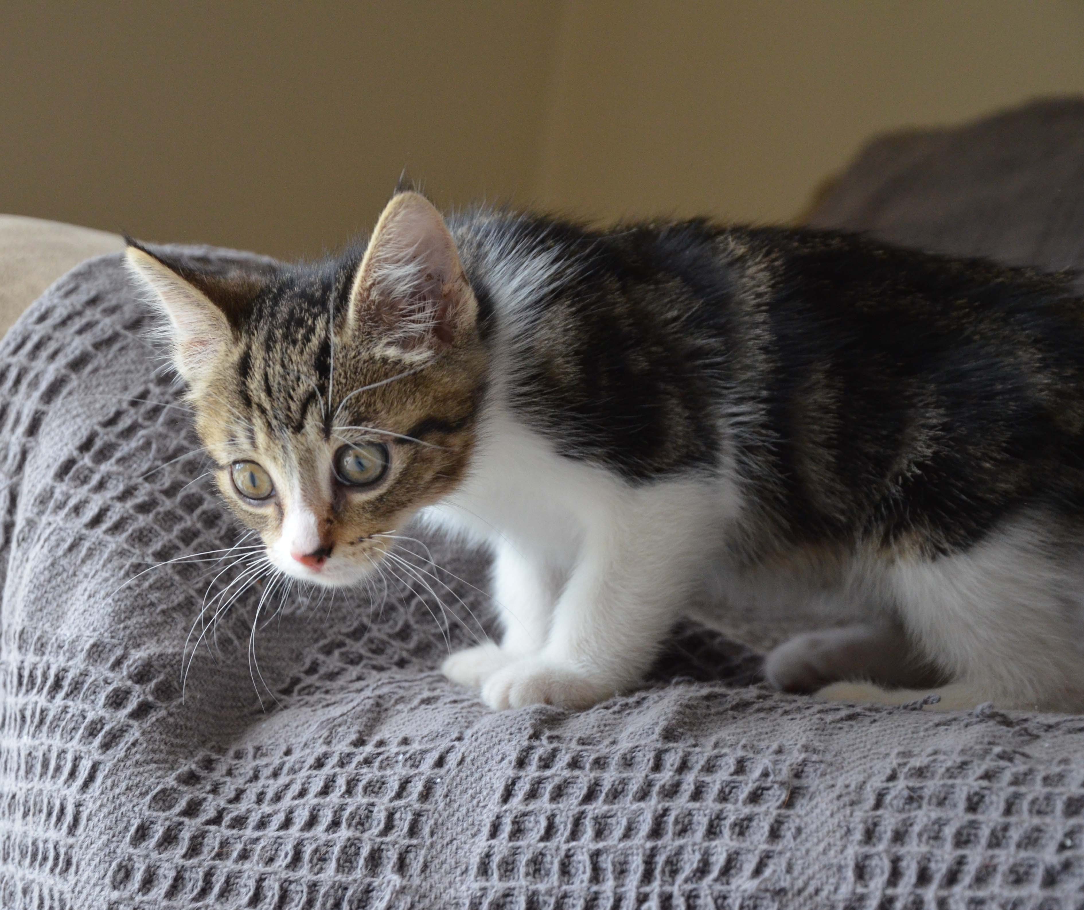 This little boy is very playful and is a pur-machine! He loves to play with other kittens, and is fine around dogs. He loves a good cuddle, climbing things and exploring.