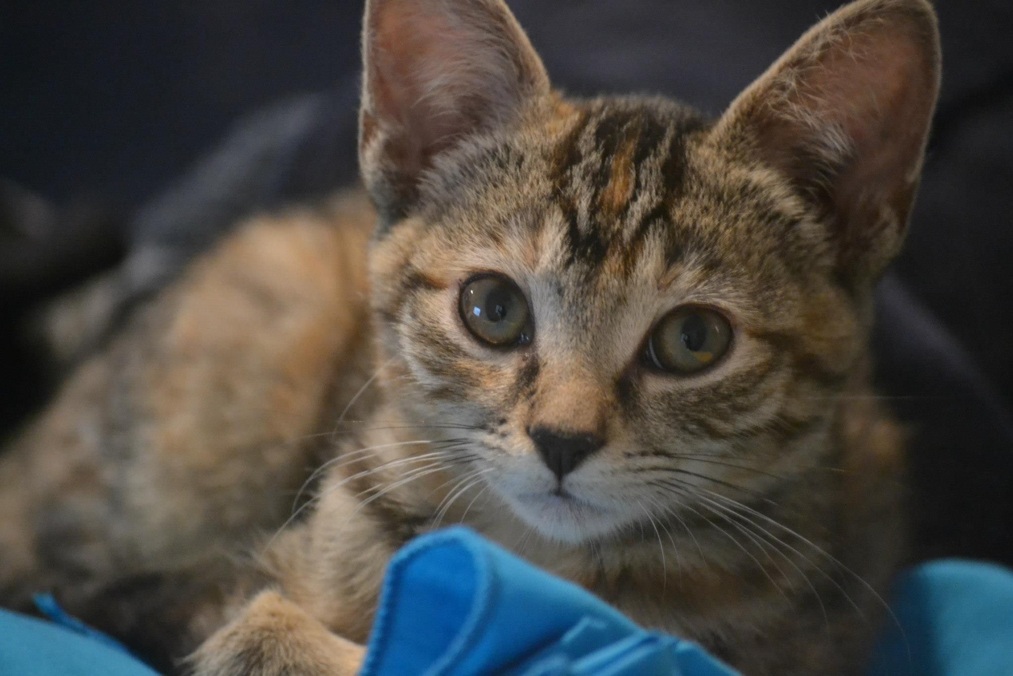 Minnie is a stunning 20 week old DSH kitten. She loves nothing more than to sit on your lap and if that doesn't work she will climb up onto your shoulder while you walk around! She has so much love to give and is always purring and rubbing her face against you. She also loves to play. Her favourite toy is a pipe cleaner she found and she carries it around everywhere. Minnie is in foster care with two adult cats who she loves spending time with. She was confident with them from day one and persistent with them as they got used to her. Minnie would love a home where she can get lots of cuddles and maybe even another cat to be friends with. If you think this little girl could be your new family member, come and meet her. I can promise you it will be love at first sight!