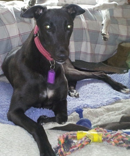 Callie is a beautiful quiet natured girl. She has settled into home life really well and is currently living with her brother Bluey, other hounds, a kelpie and 4 cats. Initially Callie is a little shy but warms to new company quite quickly. Callie and her brother Bluey were rescued from a veterinary clinic where they were surrendered for being too slow and are now loving the freedom to play together and with the other hounds. Callie just loves a cuddle and smooch and enjoys going for a walk and is excellent on a lead.
