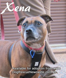 For more information or to meet Xena please phone foster carer Ewa 0417 690 801 or email bwa@bigpond.net.au . Xena is in foster care in Carey Bay, NSW, Lake Macquarie, and is available for adoption interstate.