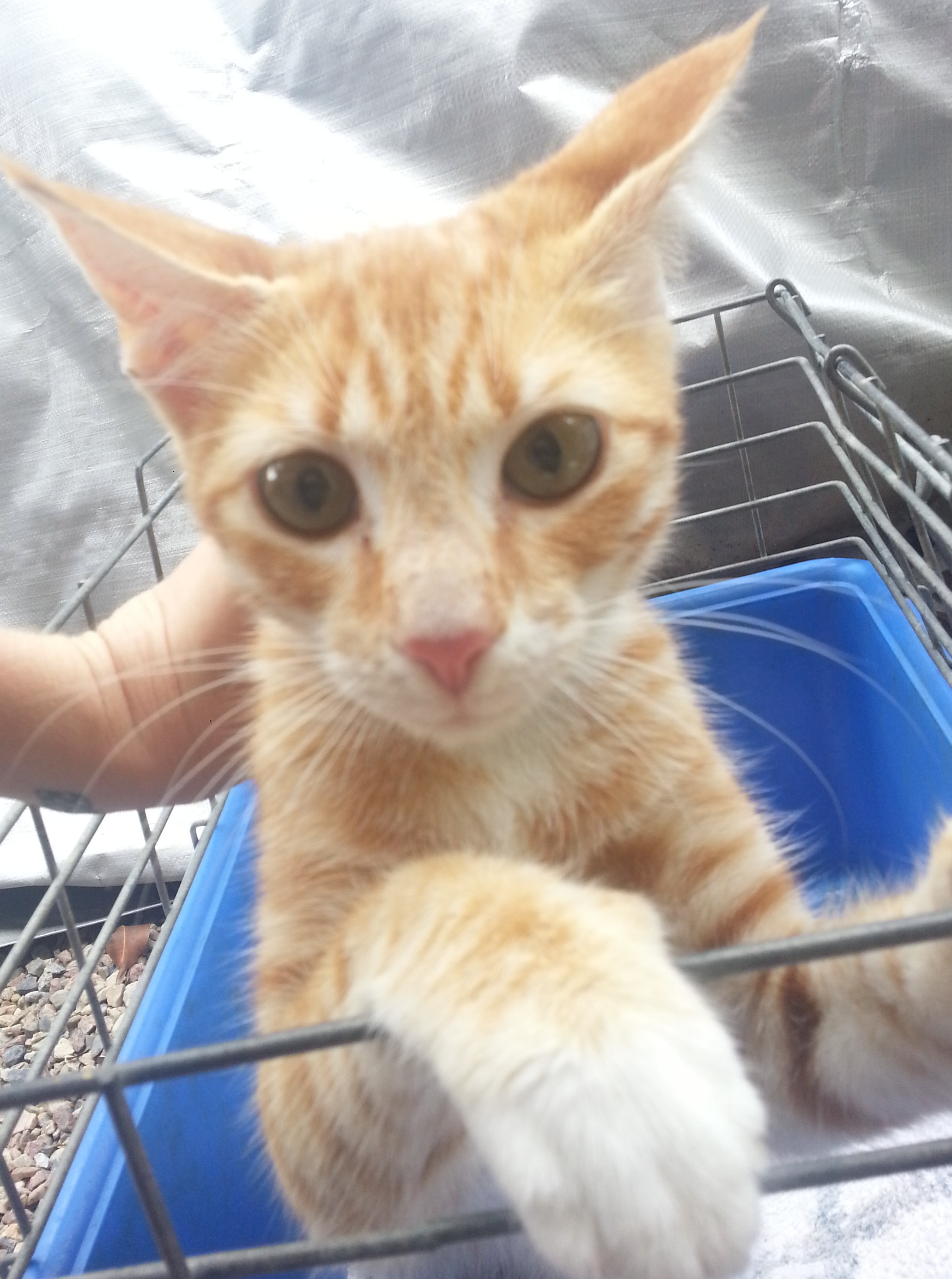 Please excuse the poor photos, they were taken in the crate as she arrived. She really is a pretty little girl, who gets along well with the other kittens but is still a bit freaked out by strange cats and dogs.