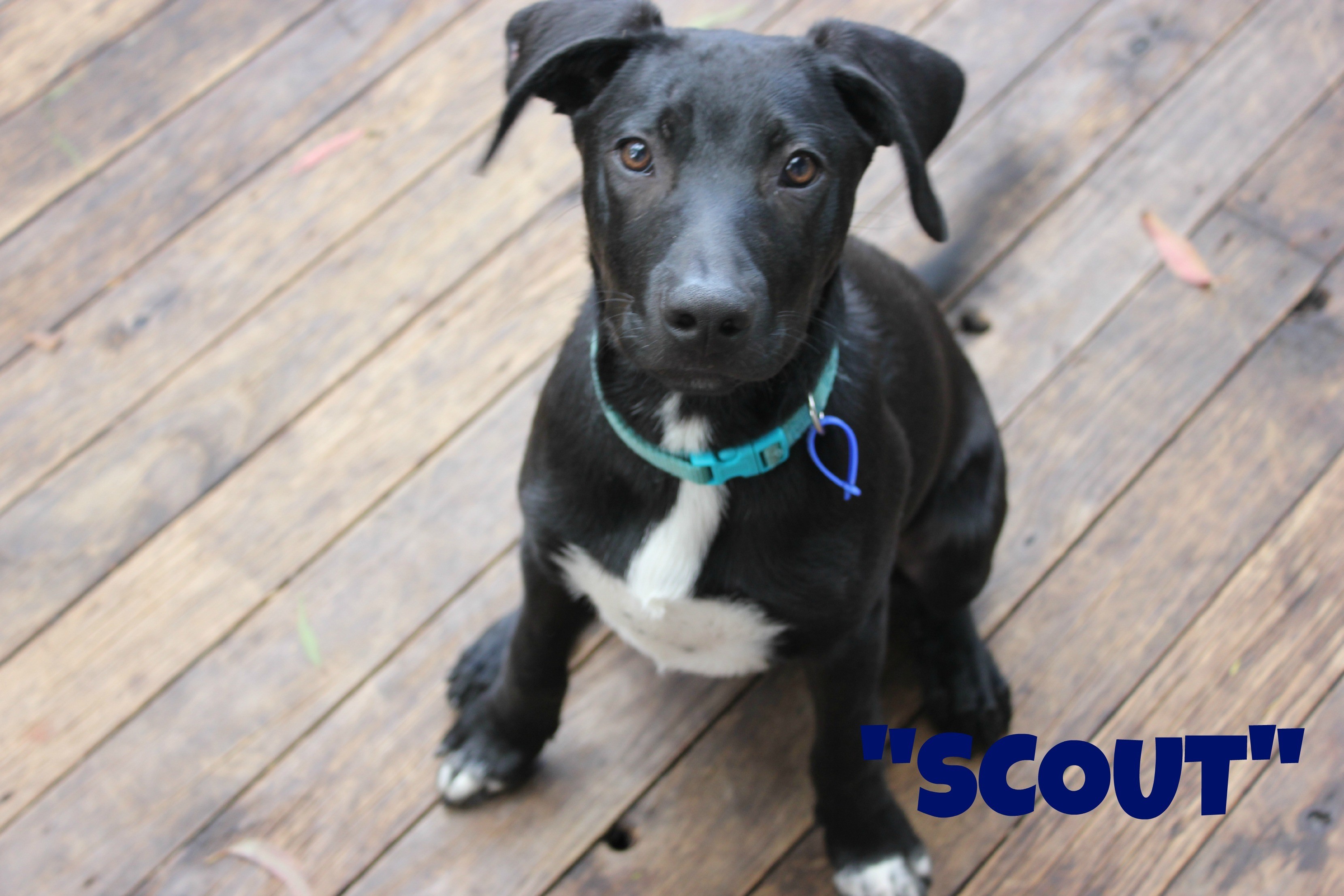 Introducing Scout, a 5mnth old Male, Labrador x Rottweiler. Scout - "The natural born explorer". Scout is my name and I am a happy, lovable, cheeky chap. I have grown a bit since the last time my picture was taken so I happily posed for the camera once more to have my profile updated. My breed is Labrador x Rottweiler which I think is the best of both doggy worlds. The Labrador in me loves a pat and a cuddle, whilst the Rottweiler in me gets into mischief and trouble. For Christmas I wished my brothers would get a family to call their own and I was so happy my wish came true. I just know that good things come to those who wait and that there is a family out there just for me. At 5 months of age I am an overgrown playful pup who wiggles my butt one way whilst wobbling my head the other way, a trick I mastered all on my own. Collecting things like pebbles, sticks, and toys is what I like to do through the day to amuse myself and I have secret stashes that only I can find.