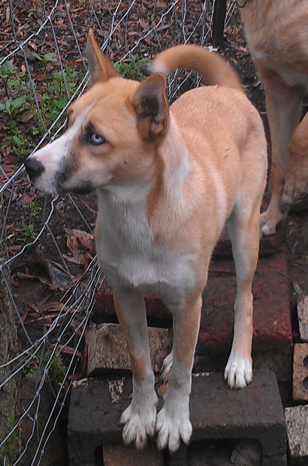 Bonnie is a stunning looking blue-eyed girl. Dingo x Husky, 6 months old. She has a friendly and fun personality, full of affection and love.