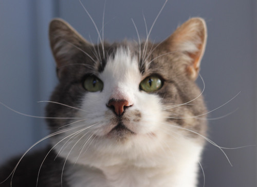 Mo loves human company and would probably prefer to be an only cat. He doesn’t like being shut inside all the time so he'll need a home where he can have access to the outside during the day. He doesn't seem to like dogs.