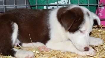 Pablo is a stunning looking man to which his photo does not do him justice. Pablo has one green eye and one blue eye and with his chocolate and white coat has heads turning where ever he goes. Pablo is a confident intellegent boy that has commenced basic obedience training, he is learning to walk on lead, sit etc. Pablo is best suited to an active couple or family with older kids that is familiar with the border collie breed. Like all puppies pablo would be required to attend puppy school to ensure he remains a happy social little guy