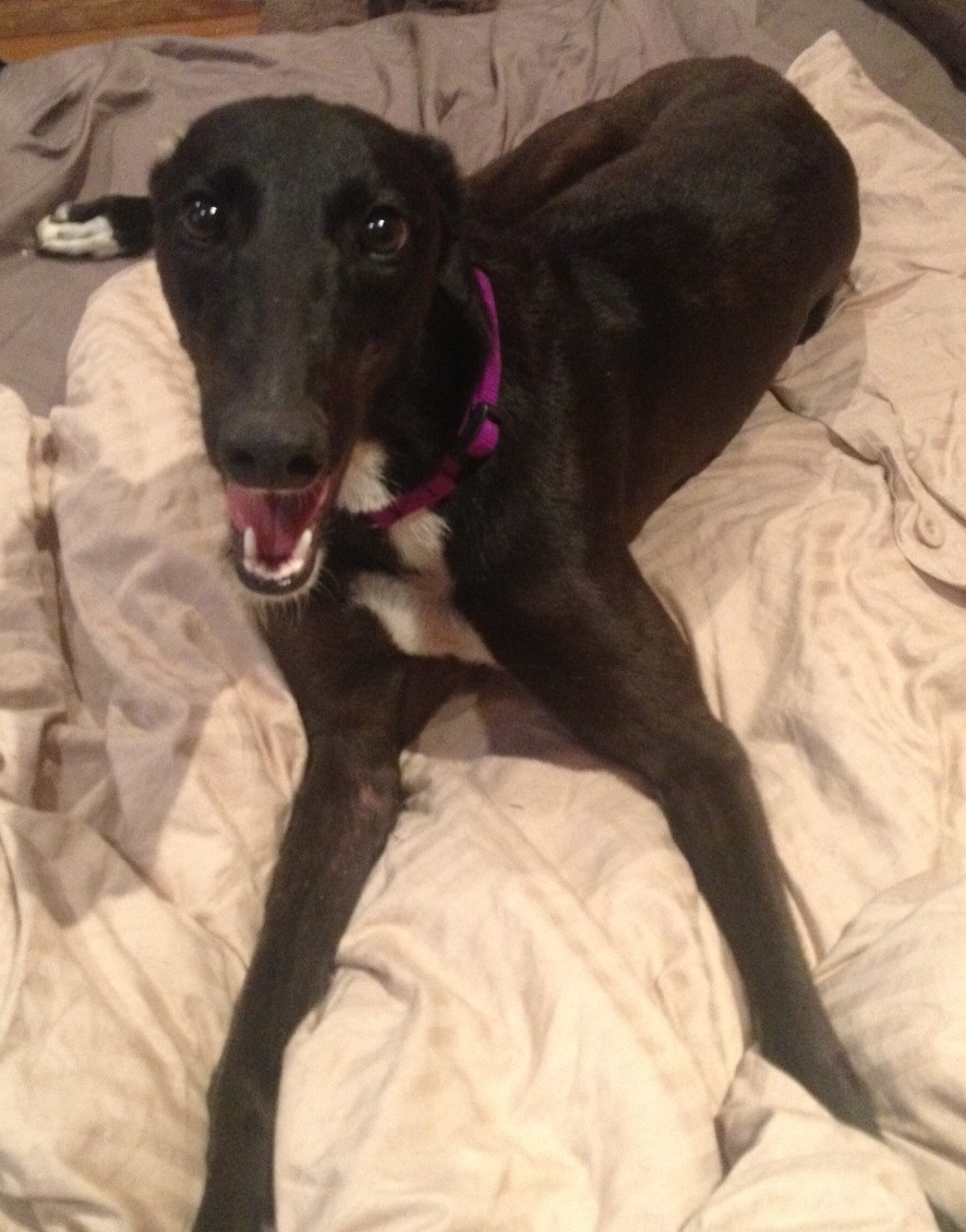 Sally is a sweet young lady who holds a very special place in the heart of her rescuer. She is a very special little girl who is still quite silly, energetic and puppy-like however she is the most loving cuddly girl you can imagine! Sally has two deformed toes on her front leg which is why she was never raced by her former racing owner, she has undertaken intensive physio and chiro treatments since being in our care and is now ready for her forever home. Sally needs a home with a large yard with another dog for company and a short 10-15 minute daily walk to keep the muscles in her leg strong and toned.