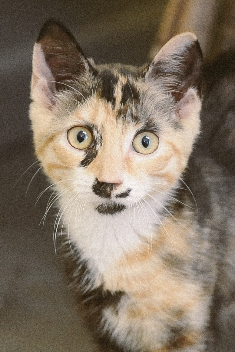She’s slightly exotic looking with a cute long snout and forward-curling whiskers. \ Combined with her colouring, she resembles a fox. Her coat is amazing - black, ginger, white, and apricot - a divine mix of Tortoiseshell and Tabby to form a wonderful ‘Torbie’. Even her paw-pads are multi-coloured. Squee! She looks different from every angle which makes her extra-fascinating to watch. A typical kitten, she’s has bursts of pure energy before deciding that it’s lap time again. This foxy girl loves toys but mainly wants to play interactive games with her humans. She doesn’t mind a bit of alone time but is always happy to see you. She would love to be part of a family with easy-going cats or dogs. With her loving nature, she would be perfect with adults and children.