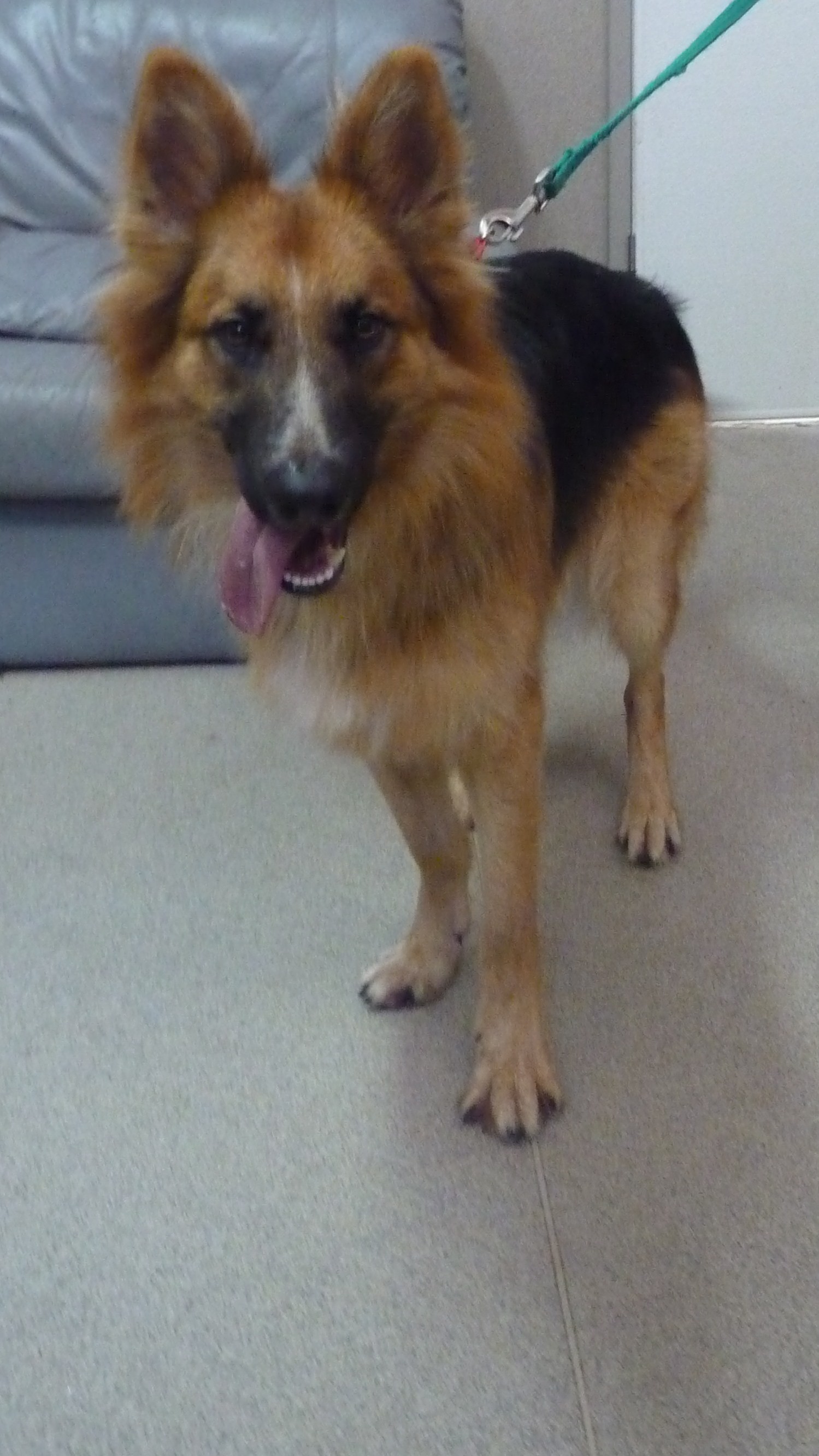 When he is inside, his foster carers insist he and his fur friends are calm. He is learning this very well and when reparing his meal he will come into the kitchen, and sit down quietly and wait He is very calm and listens to voice commands. He does not snatch food if offered a treat he takes it gently from your hand.