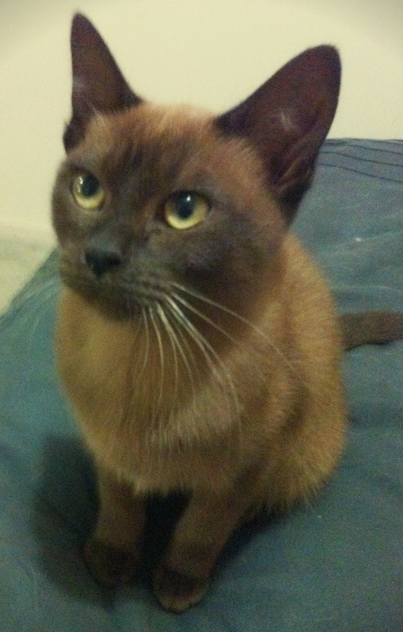 Twix is a Burmese cross (Dad was a Burmese, mum was a Tonkinese x Domestic), though she looks very much like a Burmese!