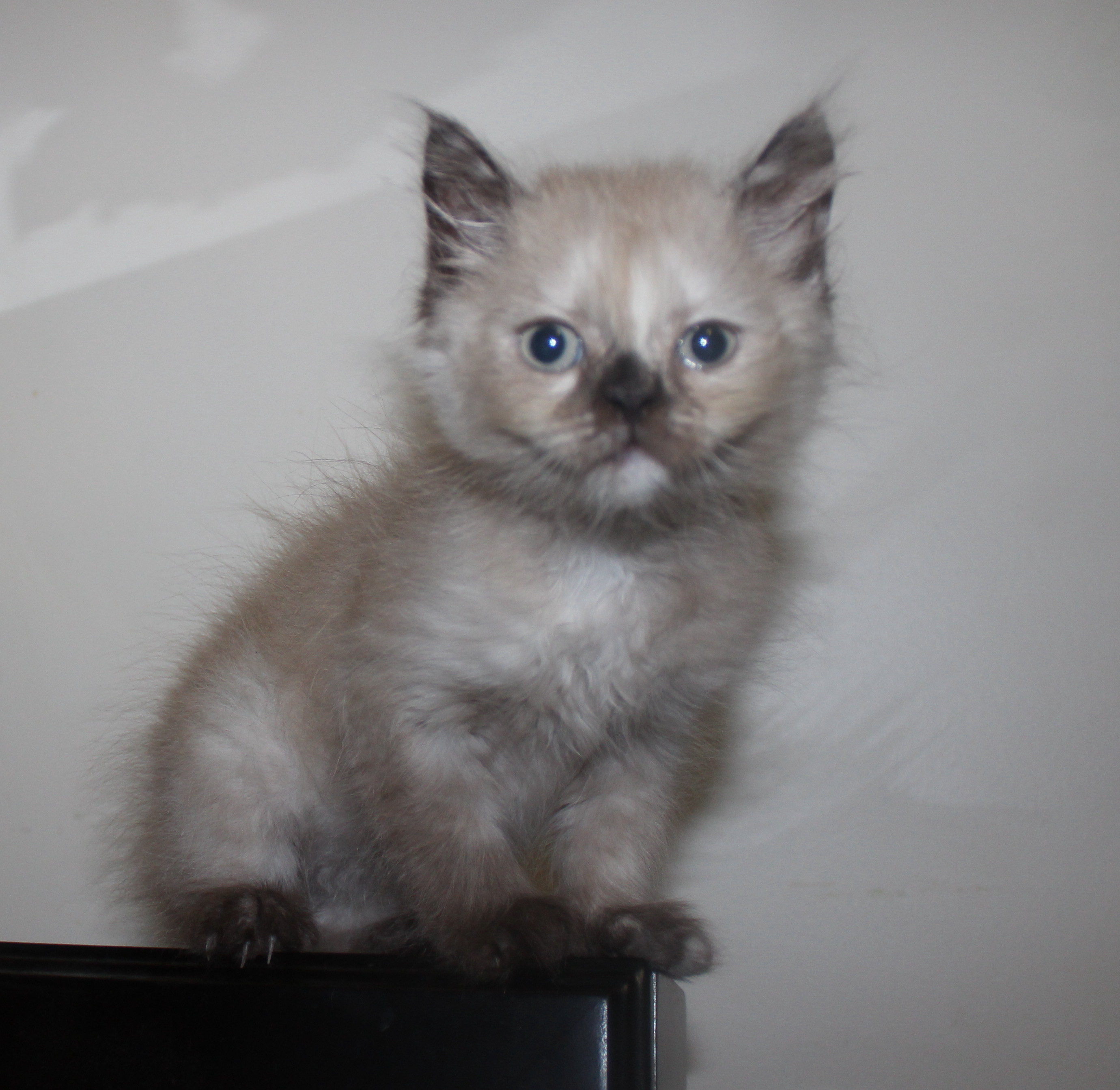She is a cross between an allery free breed (possible a long hair like a Siberian?) and a Burmese (her rescuer had this information to pass on)