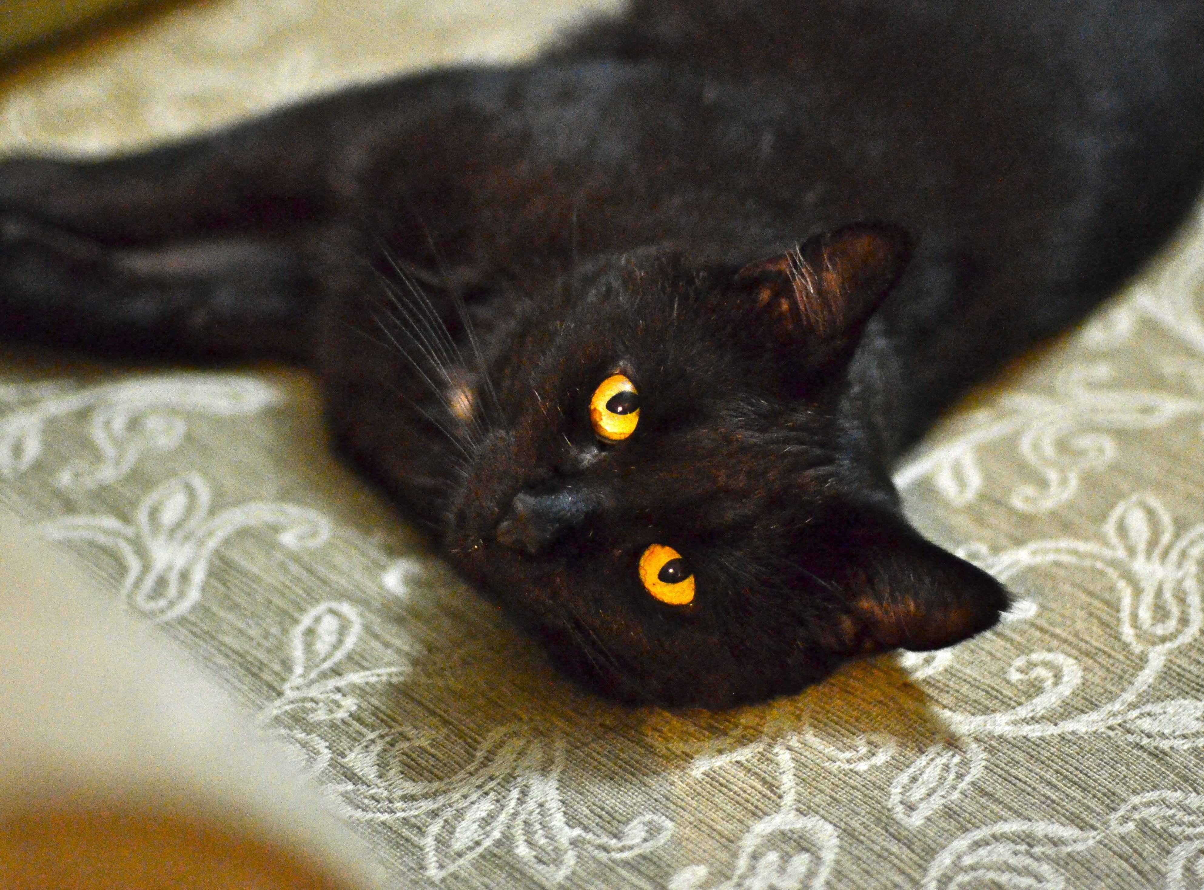 Add some ‘Georgian elegance' to your home with this sweet ‘shabby chic’ boy. \ He’s certainly gone from rags to riches and is slowly discovering his lost kittenhood. He was a skinny little scrap of a cat when he was discovered in a suburban backyard. He has now turned into a big handsome muscular boy with a thick plush coat. He walks with a bit of a swagger although he’s more of a lover than a fighter. Apart from being black, he has a cute white tummy, an amber beauty spot in his yellow eyes, and a white ‘bow tie’ that jiggles from side to side when he trots up to greet you.