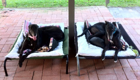 Meet Bob and Harni – a brother and sister who have been living together all their lives. We want to keep them together so we are looking for an extra special foster family who will adopt both of these beautiful hounds. They are both cat friendly, very easy going, friendly, affectionate, and cruisy. They have been living as pets for many years so they will ease comfortably into your home, onto your couch, and into your heart.