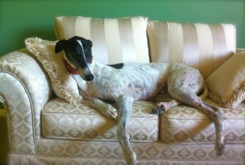 Patch is a very regal, calm, medium sized lad with impeccable doggie manners and eyes that will tug at your heart. Walks with Patch are very enjoyable as he trots along so nicely on the lead and doesn't pull. He loves car rides and will happily jump into the car then settle and lie down. Like any greyhound, he loves his naps and a zoom around the garden but is at his happiest if he can be with you wherever you are. He would make the perfect best mate for some lucky person. He is an all round easy care gentle boy.