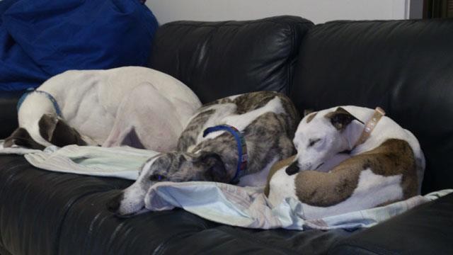 We would like to get Tenika back into a loving home and out of the rescue kennels asap. You can see from Tenika's picture of her here with the two whippets that she is not a large Grey girl.